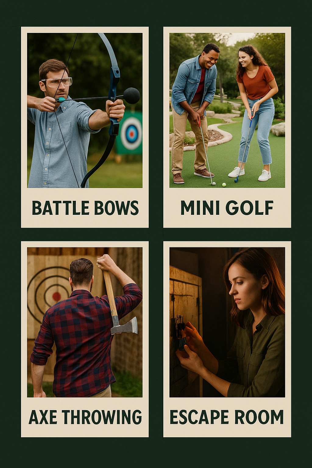 OakVine Village is in the planning phase for exciting new attractions including Battle Bows, mini golf, escape rooms, rage rooms, axe throwing, and more thrilling experiences.